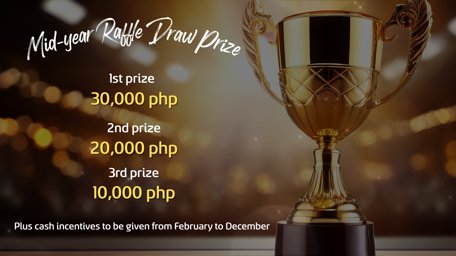 Monthly and quarterly cash incentives are up for grabs starting this month! Earn more e-tickets for a chance to win in our midyear raffle, where employees can take home major cash prizes in our mini-raffle draw: ₱30,000, ₱20,000, and ₱10,000!